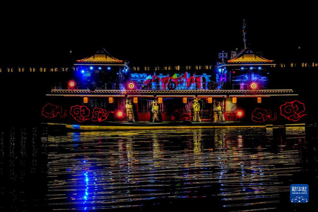 每當夜幕降臨,四川省閬中市嘉陵江城區段燈光璀璨,大型民俗文化移動實景演出在此上演,這種“移步換景”的演出方式吸引眾多游客。近年來,閬中古城為推動夜間經濟發展,充分結合當地文化資源,推出《蜀道盛世》《客來閬中》等實景演出,增加游客夜游體驗,帶動當地文旅消費。