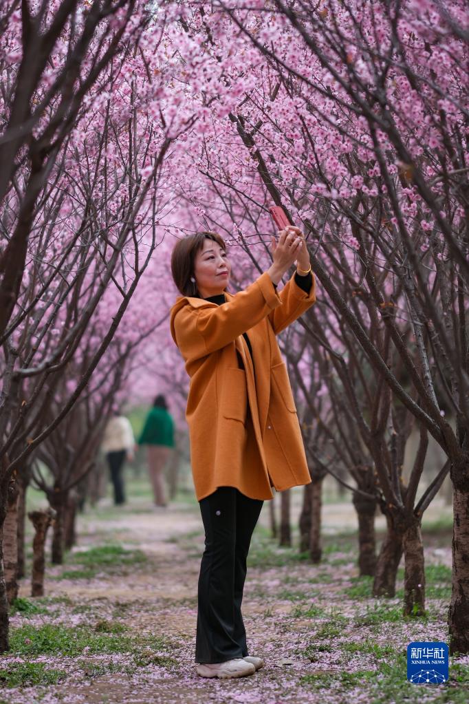 3月22日,游客在河南省安陽市殷都區的洹春園賞花留影。