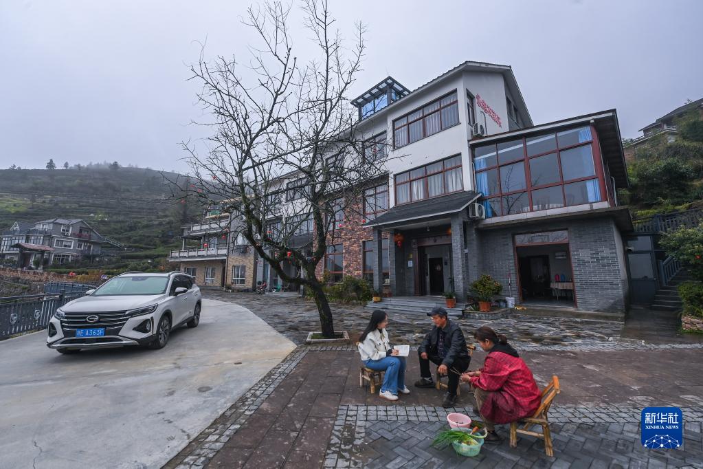 3月23日,博士研究生畢業的里山鎮安頂村村書記助理楊悅(左一)正在走訪一家農家樂經營戶,了解經營情況。
