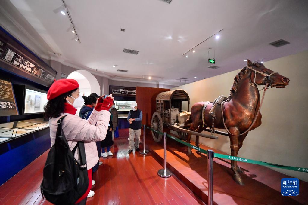 3月23日,游客來到天津郵政博物館參觀“龍行天下 津郵風采”主題郵政文化展。
