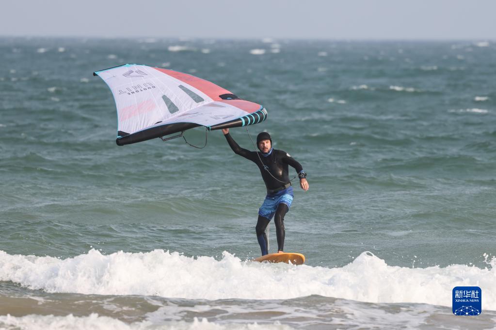 3月22日,亞歷山大在海南博鰲玩風(fēng)翼沖浪。