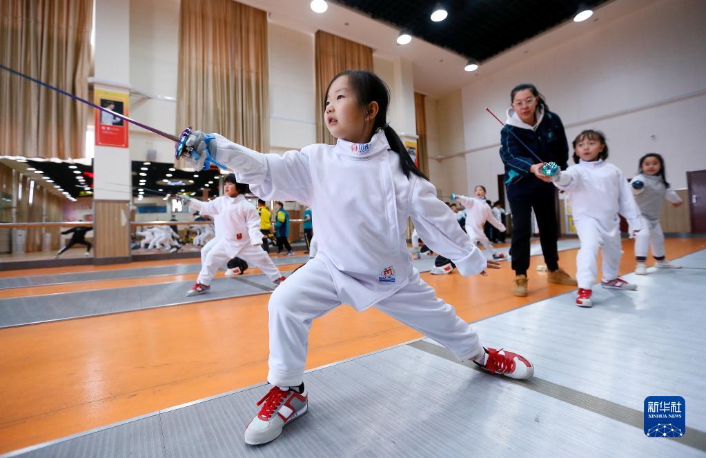 3月23日,青島市通濟(jì)實(shí)驗(yàn)學(xué)校的學(xué)生在老師的指導(dǎo)下學(xué)習(xí)擊劍。