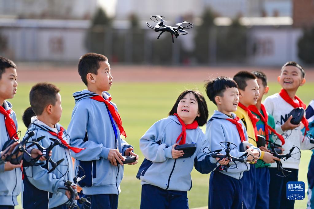 3月23日,呼和浩特市賽罕區(qū)大學(xué)路小學(xué)教育集團(tuán)西把柵校區(qū)學(xué)生體驗(yàn)操控?zé)o人機(jī)。