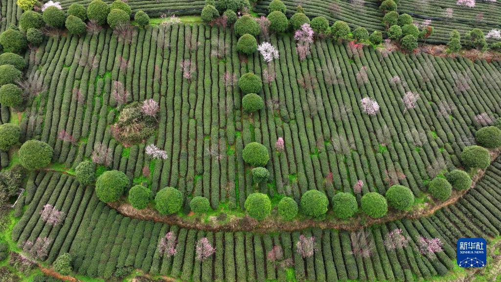3月23日拍攝的鳳岡縣永安鎮田壩社區生態茶園基地(無人機照片)。