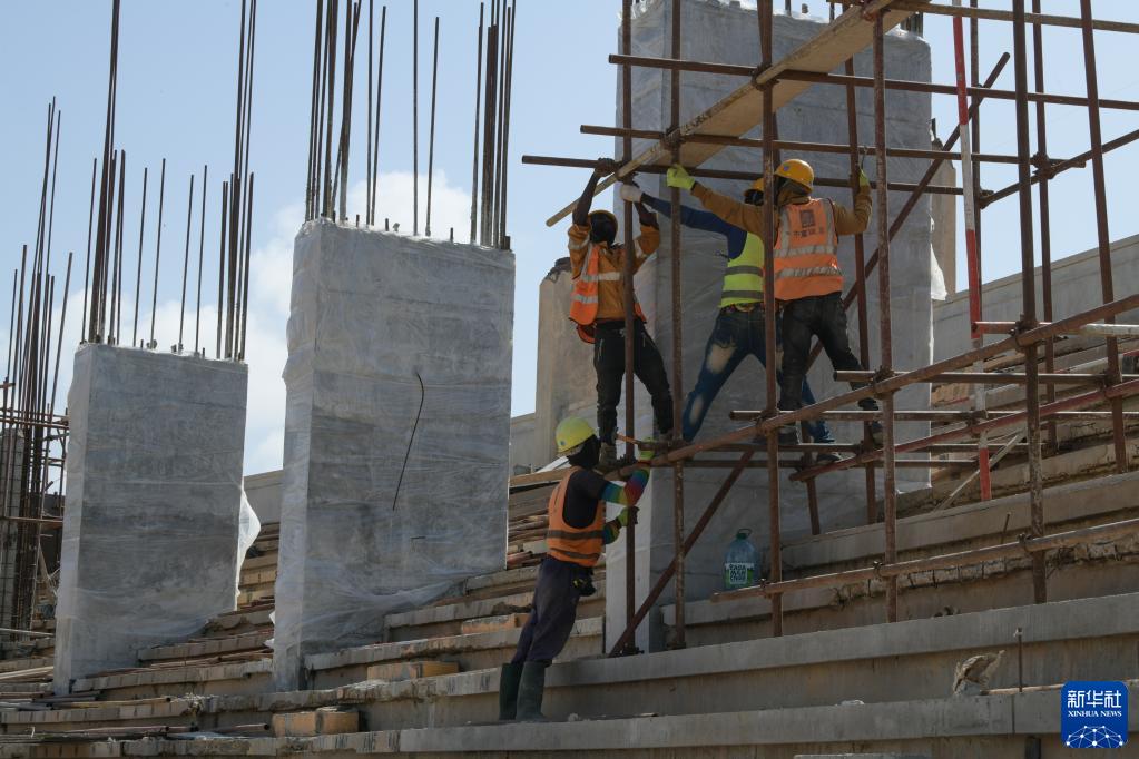 3月22日,工人在塞內加爾首都達喀爾的桑戈爾體育場施工。