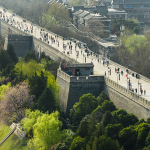 近日,陜西西安明城墻旁春意漸濃,吸引不少市民游客前來踏青。