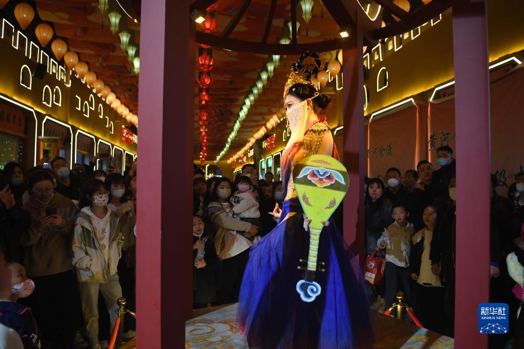 3月25日,游客在“黃河食渡文化夜市”欣賞舞蹈表演。
