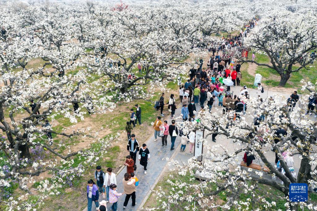 近日,安徽省宿州市碭山縣50萬畝梨樹進入盛花期,豐富多彩的活動在梨園舉行,吸引游客前來賞花踏春。
