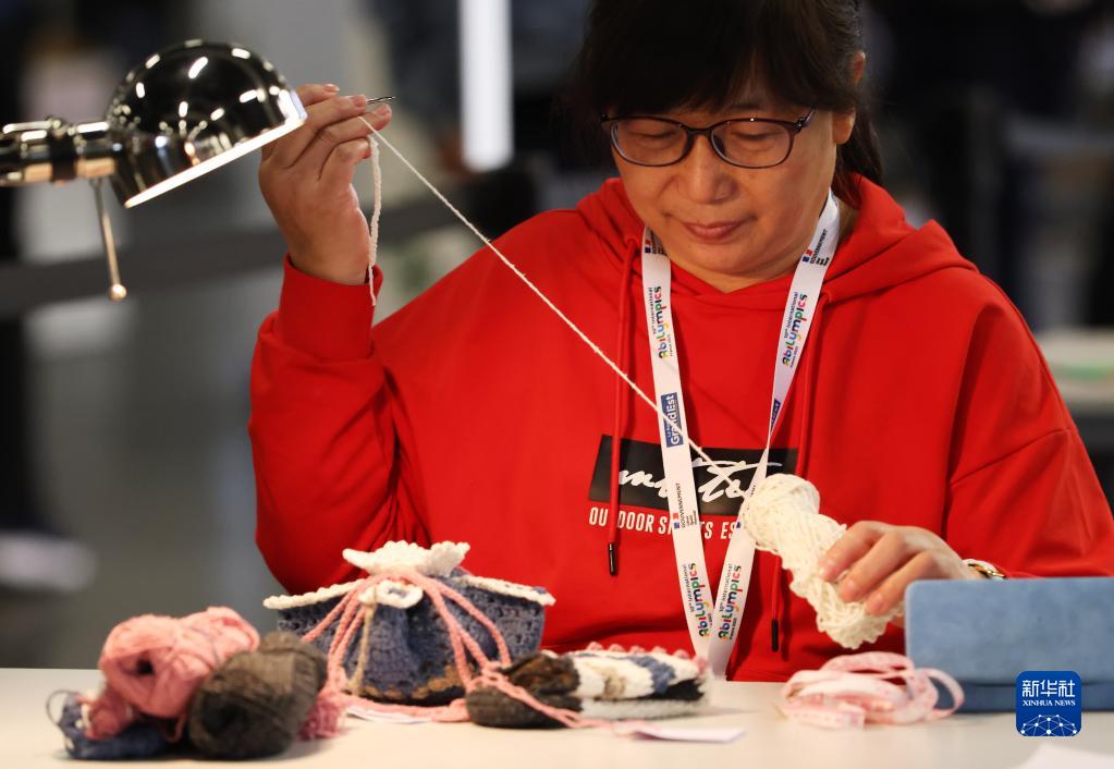 3月25日,在法國梅斯舉行的第十屆國際殘疾人職業技能競賽中,最終獲得亞軍的中國選手沙紅英參加鉤針編織比賽。