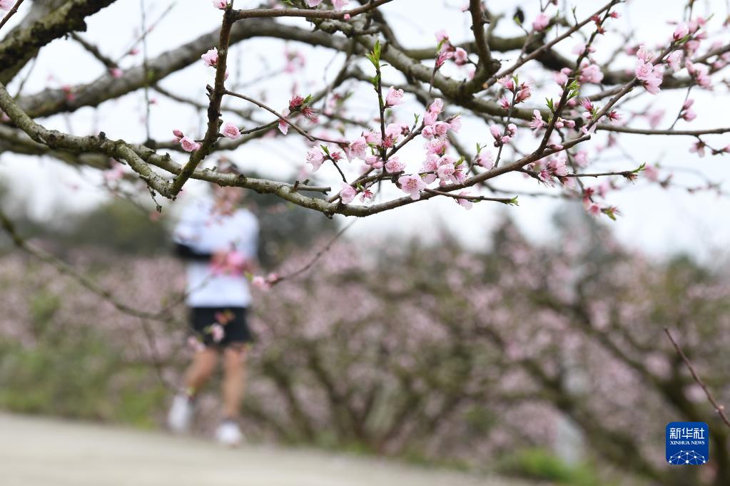 3月26日,跑步愛(ài)好者在貴州省遵義市余慶縣龍溪鎮(zhèn)花果山跑步。