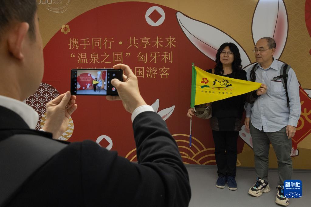 3月26日,中國游客抵達匈牙利布達佩斯機場后拍照留念。