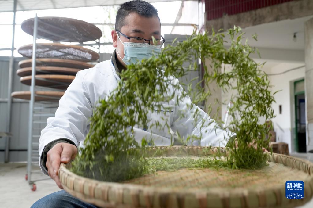 3月27日,在重慶市北碚區天府鎮文星村制茶車間,工作人員在加工“明前茶”。