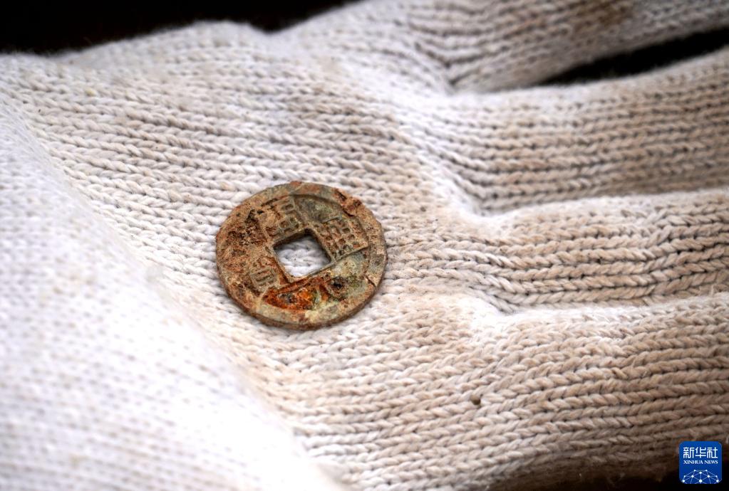 這是宋國故城遺址內的唐代墓葬出土的銅錢(3月25日攝)。新華社記者 李安 攝