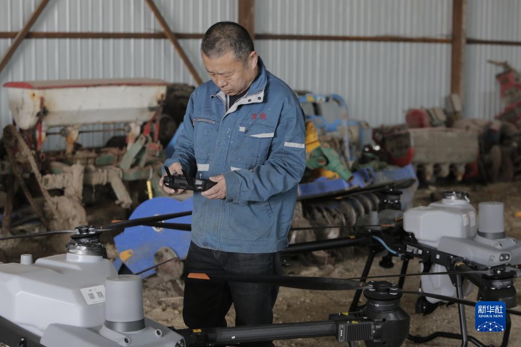 3月27日,在海林市長(zhǎng)汀鎮(zhèn)卜家村,海林市農(nóng)機(jī)總站的技術(shù)人員在調(diào)試農(nóng)業(yè)無(wú)人機(jī)的各項(xiàng)參數(shù)。