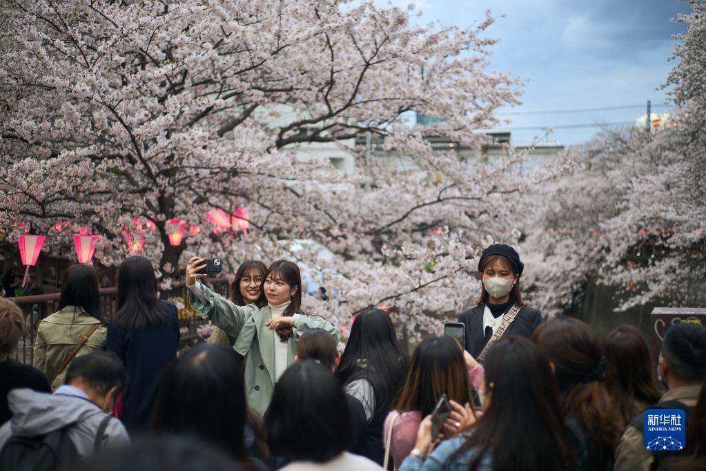 近日,東京進入櫻花季,不少民眾來到東京著名賞櫻點目黑川觀賞櫻花。