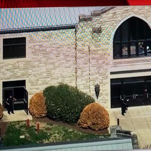 3月27日在美國阿靈頓拍攝的屏幕顯示美國田納西州一小學發生槍擊事件的現場畫面。