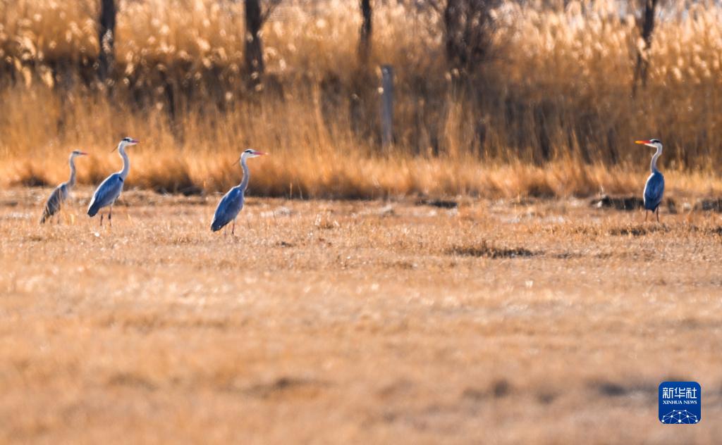 3月27日,蒼鷺在孟家段國家濕地公園覓食。