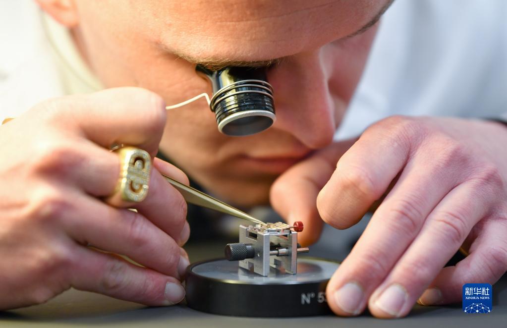 3月27日,在瑞士日內(nèi)瓦,一名鐘表匠在“鐘表與奇跡”高級鐘表展上展示技藝。