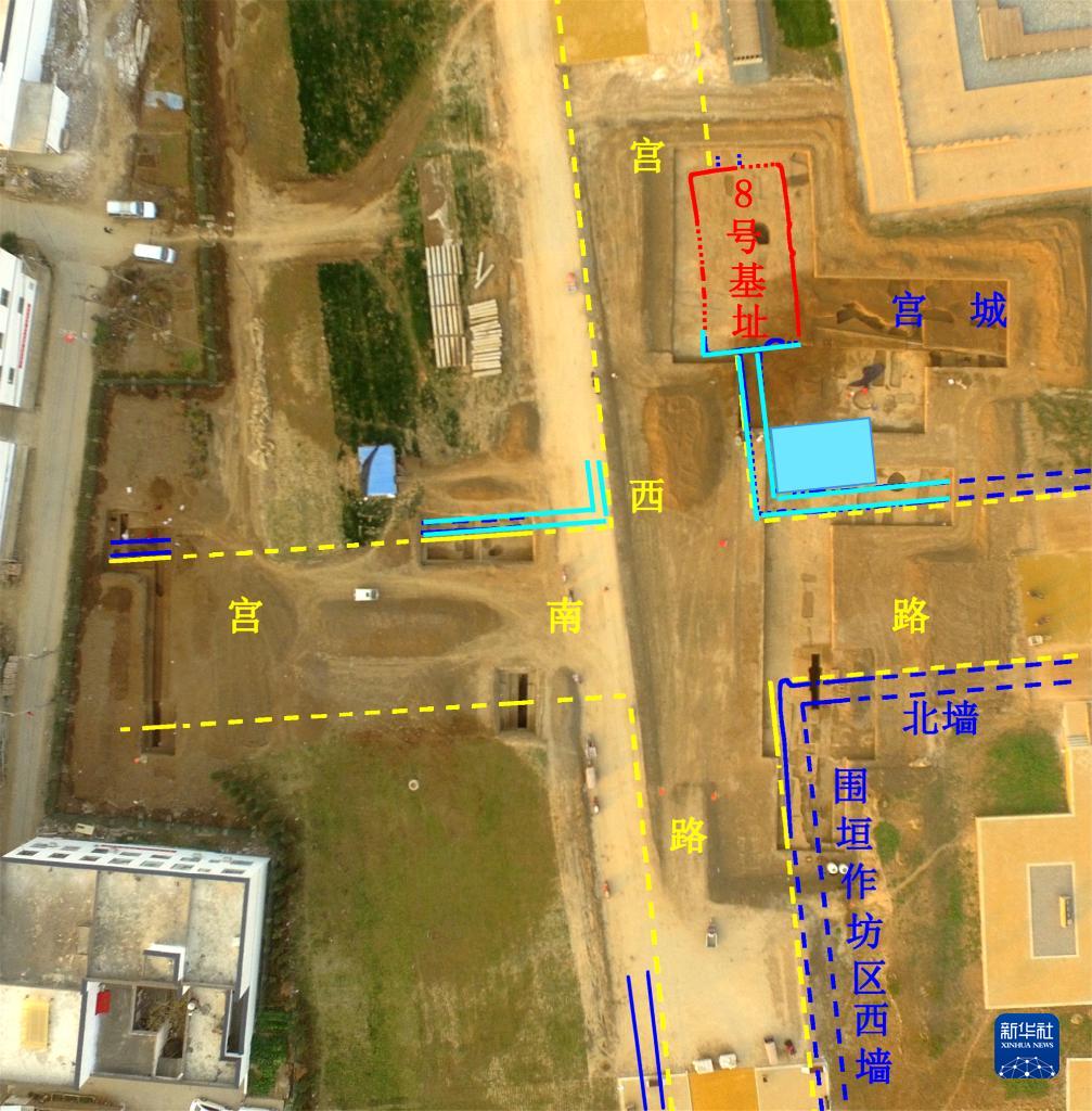 河南偃師二里頭都邑中心區西南路口的新發現航拍示意圖(資料照片)。