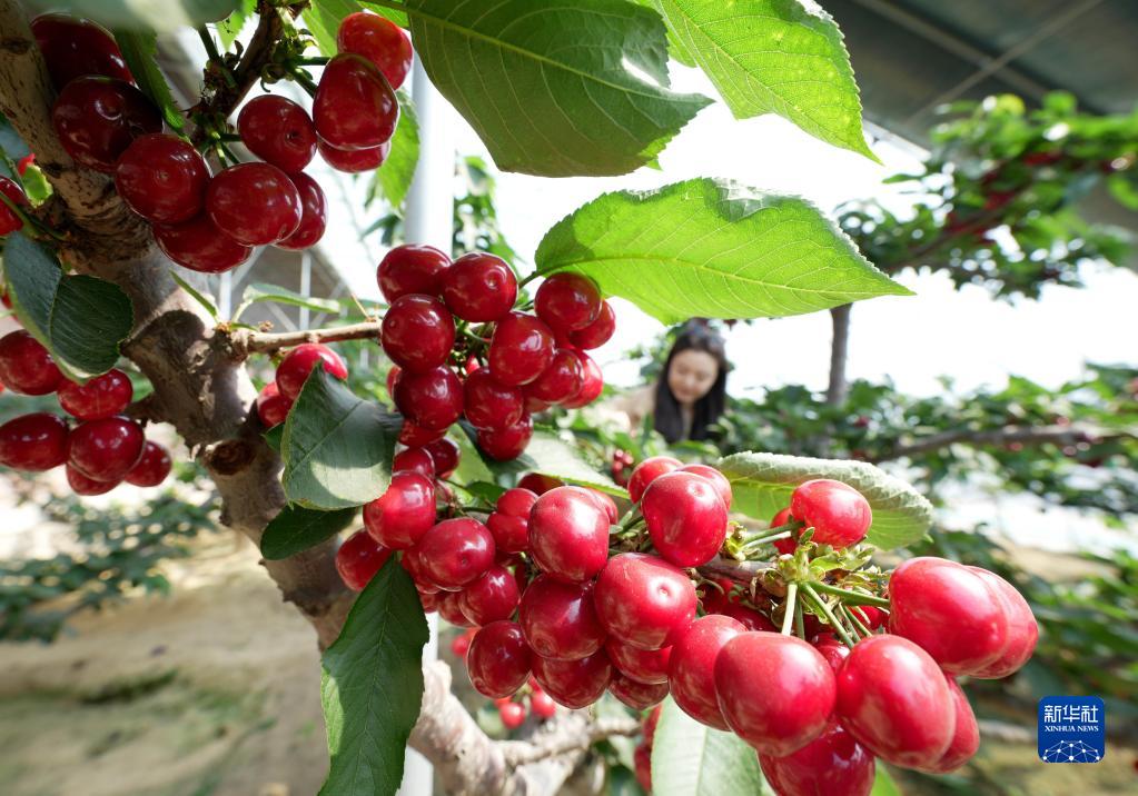 3月28日,游客在秦皇島市海港區(qū)海陽鎮(zhèn)常香苑家庭農(nóng)場的大棚內(nèi)采摘櫻桃。