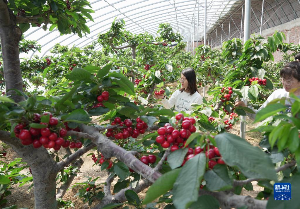 3月28日,游客在秦皇島市海港區(qū)海陽鎮(zhèn)常香苑家庭農(nóng)場的大棚內(nèi)采摘櫻桃。