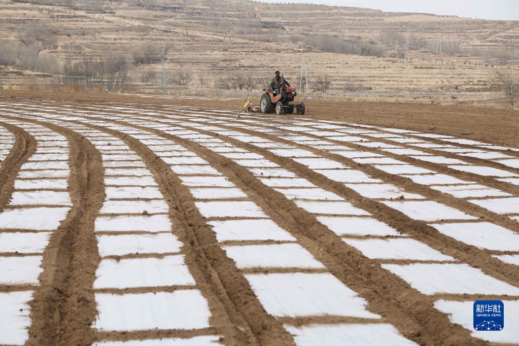 近日,隨著氣溫回升,甘肅省定西市安定區香泉鎮農民搶抓農時,及時整地、施肥、覆膜保墑,確保春耕春播生產順利進行。