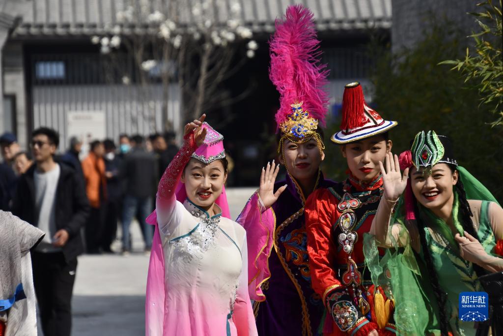 3月28日,來自甘肅省的演員在準備表演歌舞。