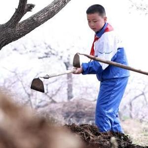 3月28日,內(nèi)丘縣大都城小學(xué)學(xué)生在梨園鋤草。