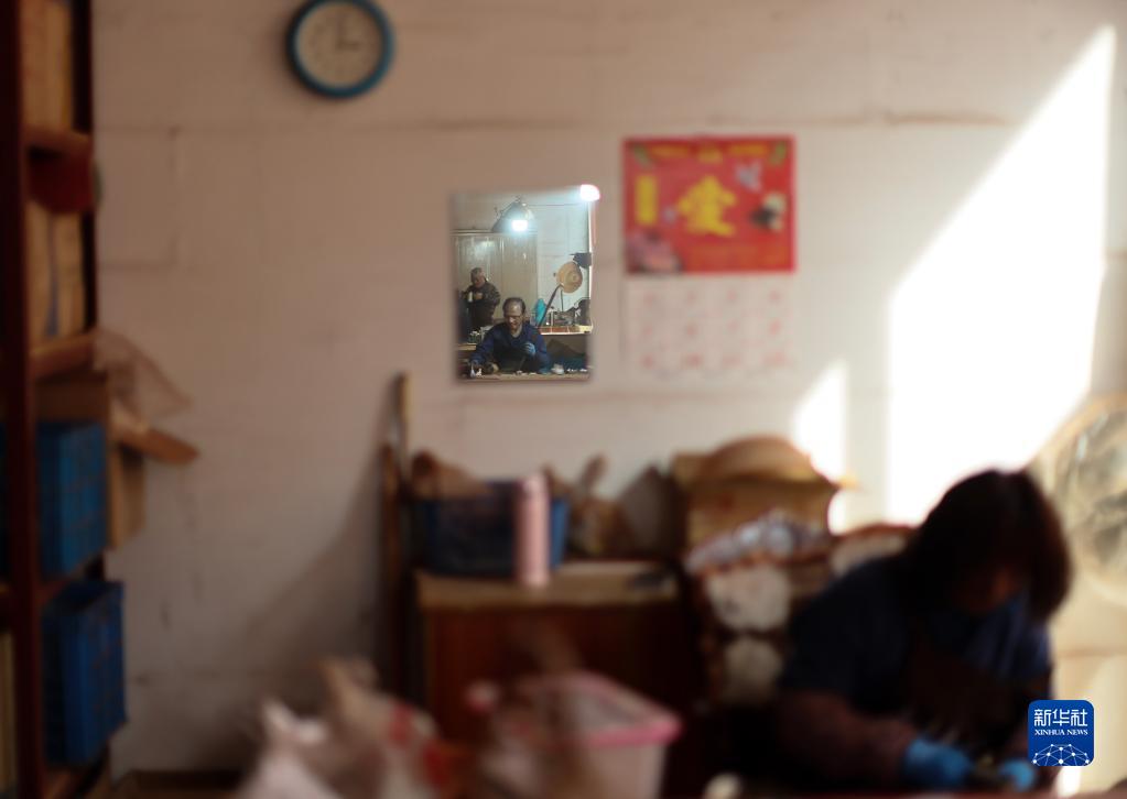 3月28日,在江蘇無錫梅村街道二胡產(chǎn)業(yè)園,工人在制作二胡。
