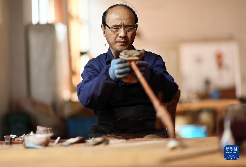 3月28日,在江蘇無錫梅村街道二胡產業園,工人在組裝二胡。