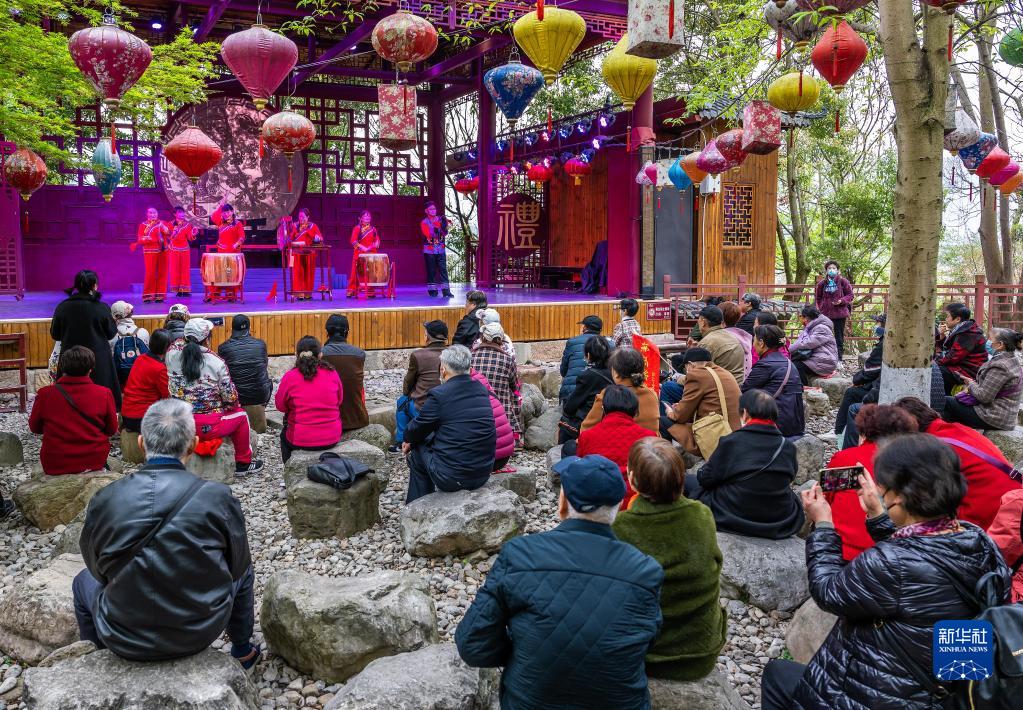 3月28日,游客在三峽大壩上游湖北省宜昌市秭歸縣屈原文化旅游區(qū)內(nèi)觀(guān)看非遺表演。