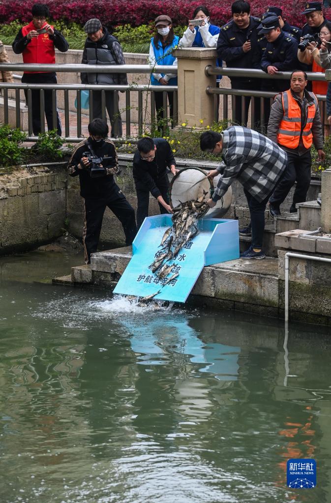 當日,浙江省湖州市吳興區龍泉街道舉行“增殖放流共護母親河”活動,提升城區河道水質、普及生態環保意識。近年來,龍泉街道大力推進城市小區水體精細化治理,努力打造“水清、流暢、岸綠、堤固、景美、人和”的生態環境。