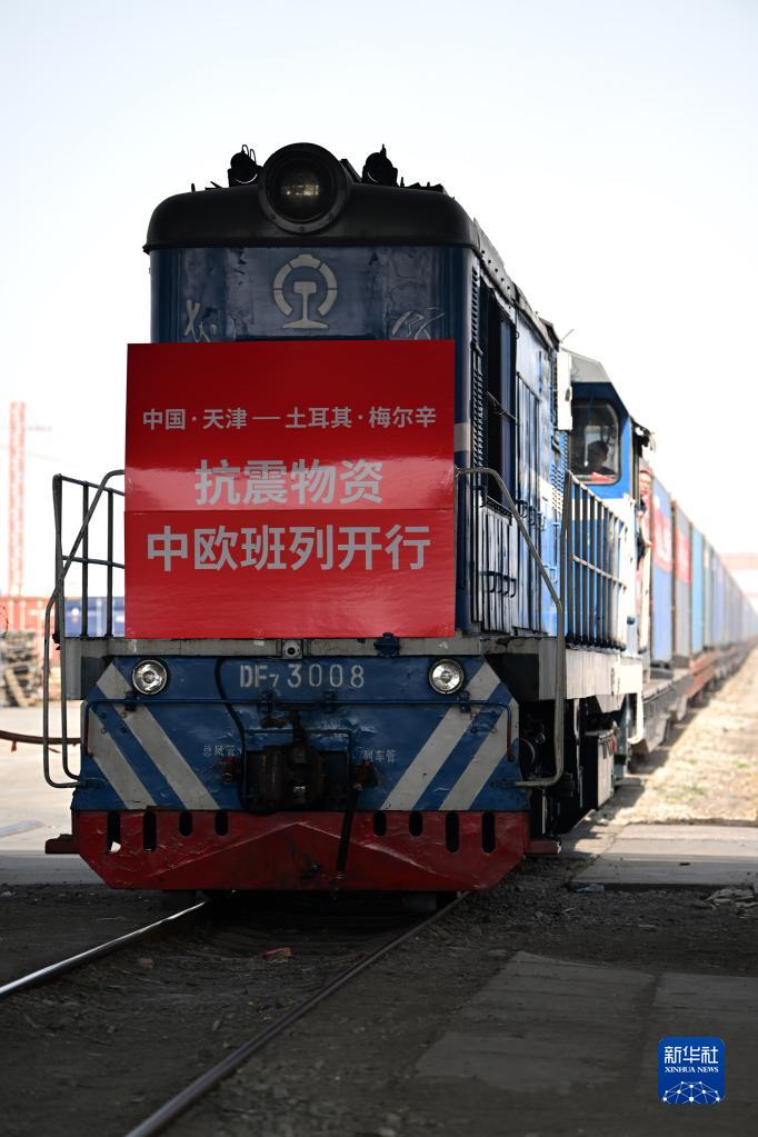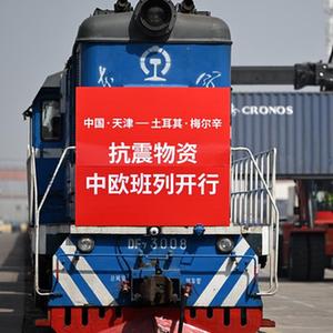 當日,中國鐵路北京局集團有限公司首趟天津至土耳其中歐班列從天津開發區盛鐵物流有限公司專用線駛出。據了解,該班列裝載著約1萬頂抗震救援帳篷,將經由阿拉山口鐵路口岸出境直達土耳其梅爾辛市。