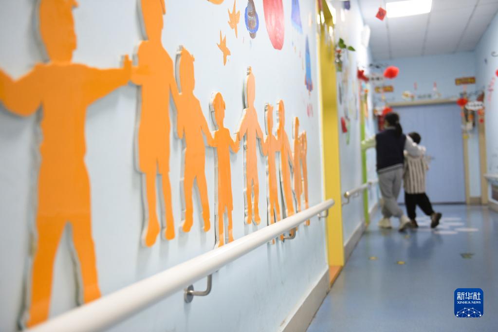 3月29日,一名老師帶著自閉癥兒童進教室上課。
