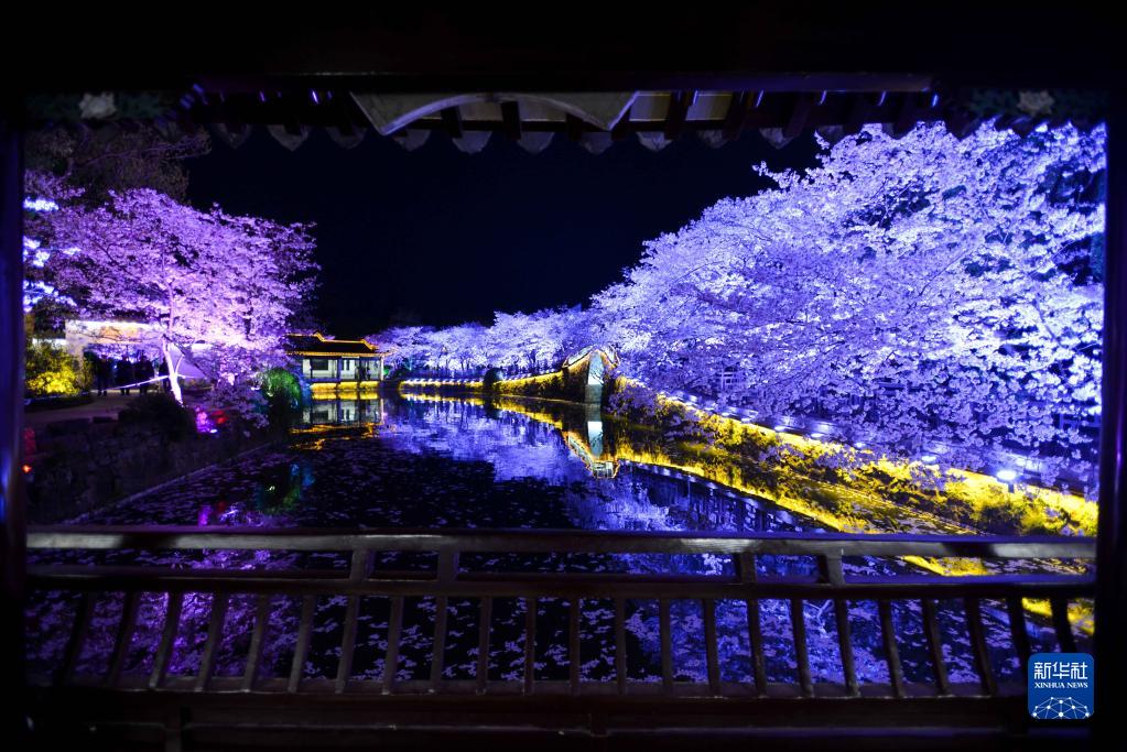 近日,江蘇無錫太湖黿頭渚景區(qū)里櫻花盛放,許多游客選擇夜賞櫻花,感受春天的浪漫。