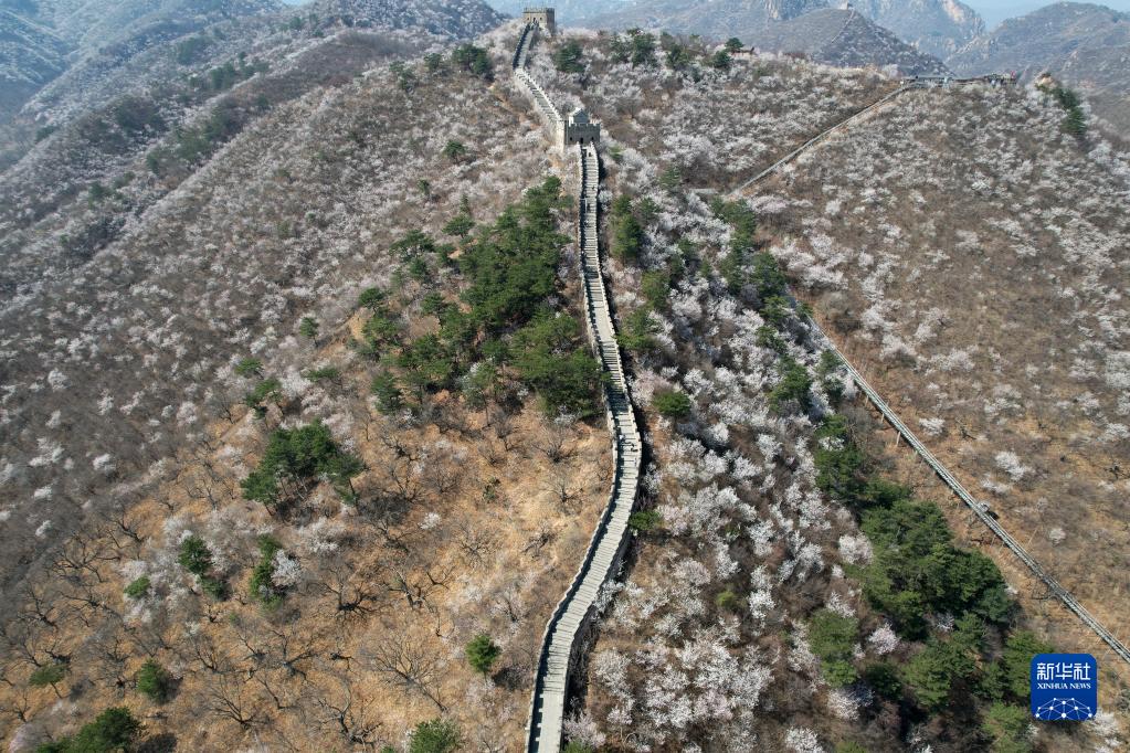 春日的京郊,山花遍野,與長城相映成景,引人入勝。