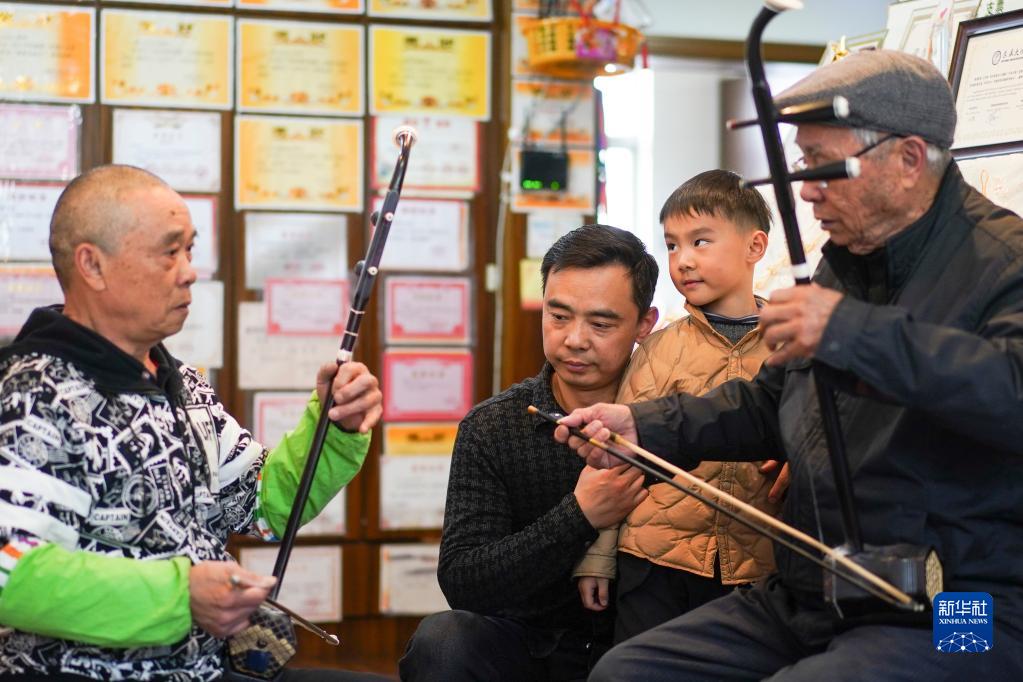 識譜、拉弦樣樣不懂,錢福基四處討教,然后回家摸索練習(xí),慢慢掌握二胡演奏技巧。受他的影響,兒子錢建平也愛上了二胡演奏。生活條件越來越好,孫子錢鈞在女兒錢智嫻5歲時便開始請專業(yè)二胡老師授課,父女倆一起學(xué)習(xí),共同提高。2019年,錢智嫻獲得第四屆“敦煌杯”中國二胡演奏比賽非職業(yè)少年B組金獎。如今,錢鈞7歲的兒子錢智臣以姐姐為榜樣,也開始練習(xí)二胡。