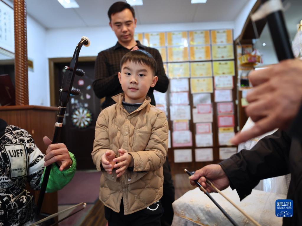 識譜、拉弦樣樣不懂,錢?;奶幱懡蹋缓蠡丶颐骶毩暎莆斩葑嗉记?。受他的影響,兒子錢建平也愛上了二胡演奏。生活條件越來越好,孫子錢鈞在女兒錢智嫻5歲時便開始請專業二胡老師授課,父女倆一起學習,共同提高。2019年,錢智嫻獲得第四屆“敦煌杯”中國二胡演奏比賽非職業少年B組金獎。如今,錢鈞7歲的兒子錢智臣以姐姐為榜樣,也開始練習二胡。