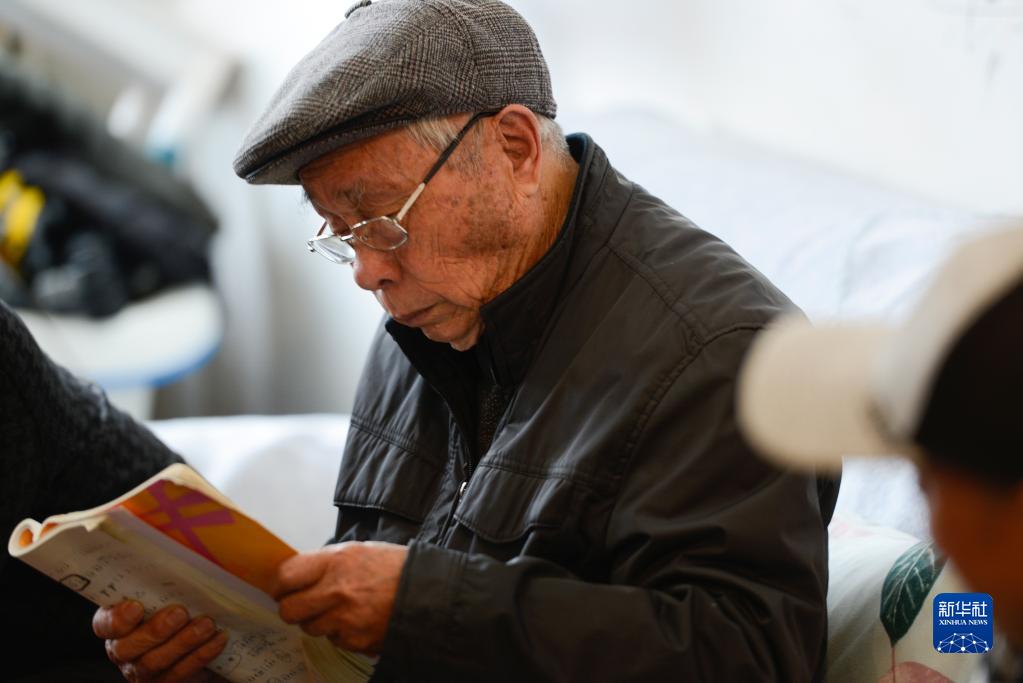 3月29日,錢福基在江蘇無錫家中翻看樂譜。