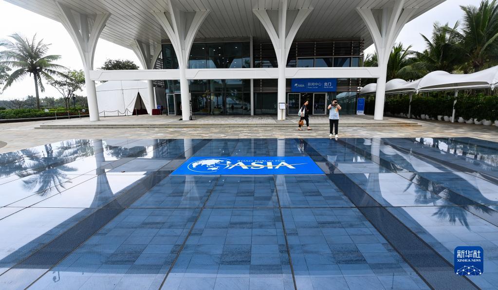 3月30日拍攝的博鰲亞洲論壇新聞中心門(mén)前的光伏地磚。