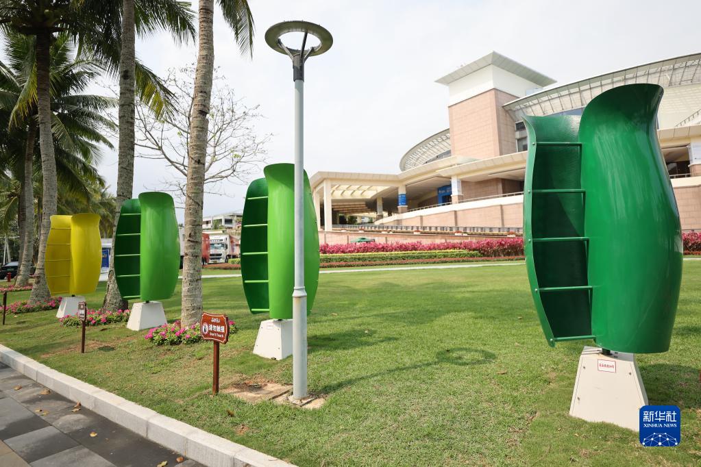 3月30日拍攝的博鰲亞洲論壇國際會議中心草坪上的花朵風(fēng)機。