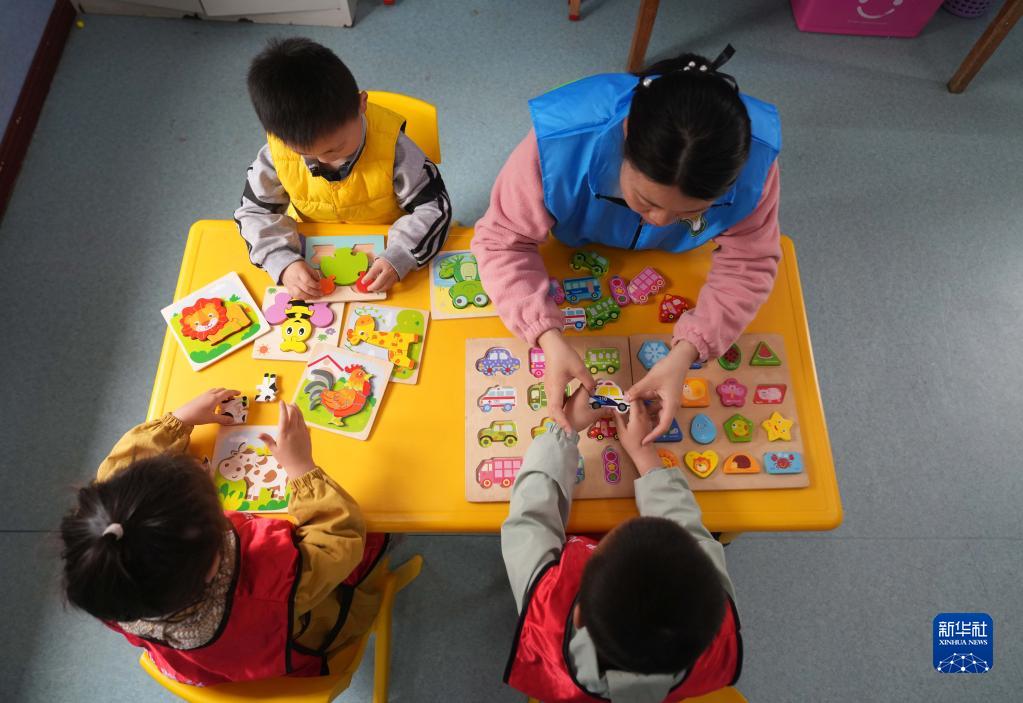 3月31日,在重慶市北碚區(qū)奔月鐵路幼兒園康教中心,特教老師幫助孤獨癥兒童進(jìn)行精細(xì)動作訓(xùn)練。