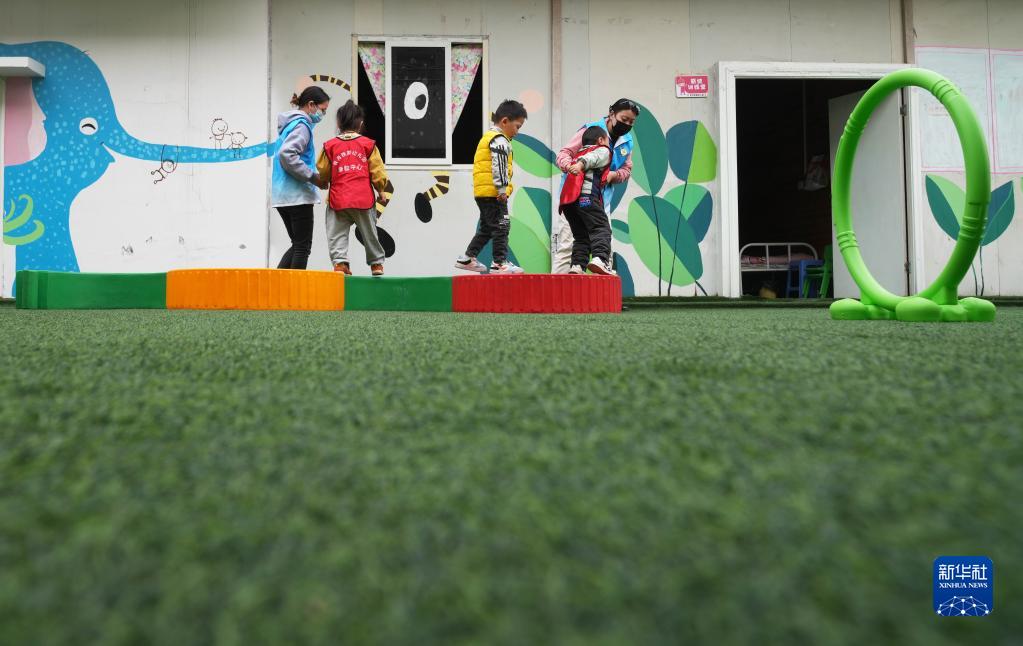 3月31日,在重慶市北碚區(qū)奔月鐵路幼兒園康教中心,特教老師幫助孤獨(dú)癥兒童進(jìn)行感統(tǒng)訓(xùn)練。