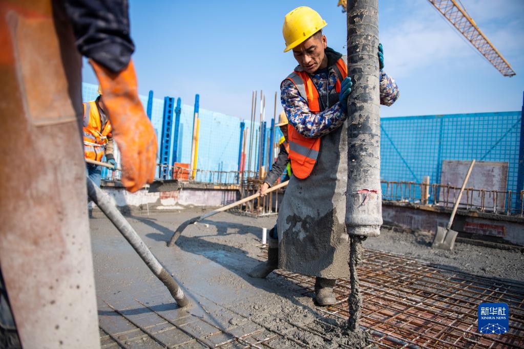 4月1日,在長沙岳麓山實(shí)驗(yàn)室集聚區(qū)農(nóng)大片區(qū)項(xiàng)目建設(shè)現(xiàn)場,工人在進(jìn)行封頂施工作業(yè)。
