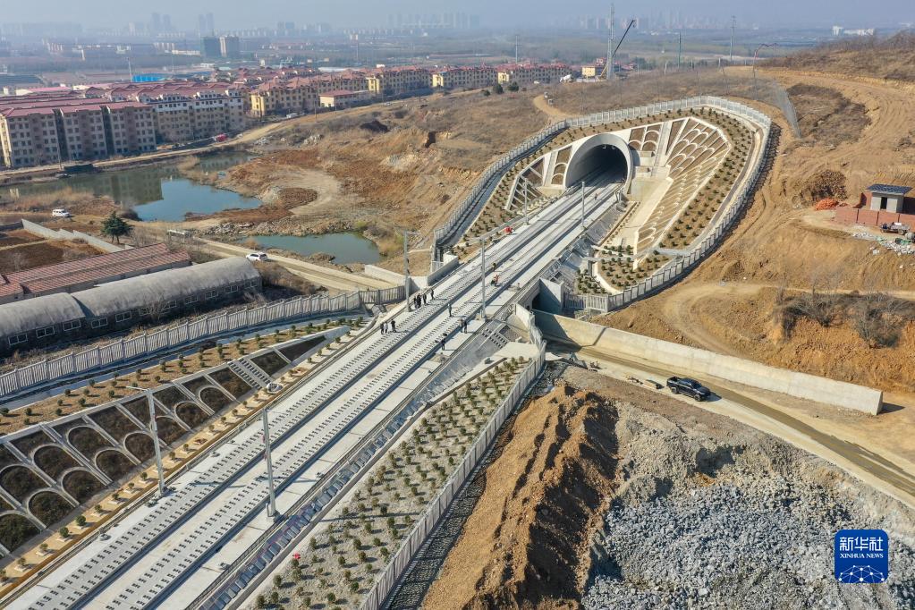 俯瞰萊榮鐵路神童山隧道段(3月30日攝,無人機照片)。