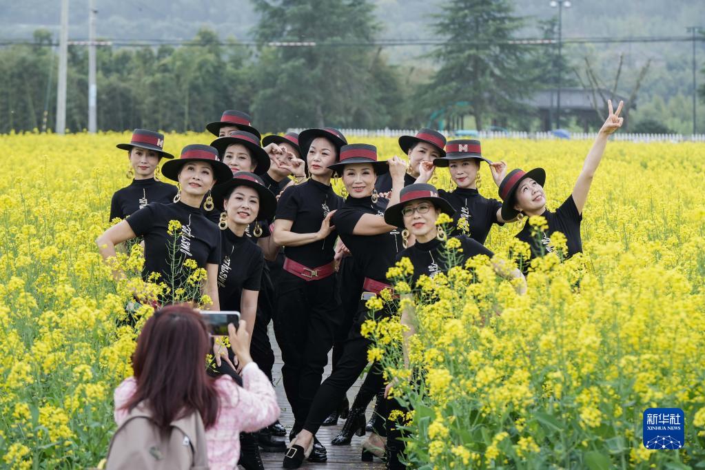 當(dāng)日,2023中國臨安郎家共富稻田油菜花節(jié)在浙江省杭州市臨安區(qū)青山湖街道郎家村“共富稻田”開幕,吸引各地游客前來感受春季田野的韻味。