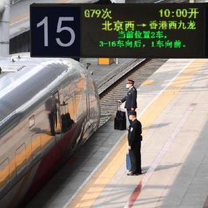 4月1日,北京西至香港西九龍G79次列車停靠在北京西站。