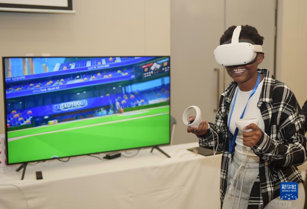 3月31日,在博茨瓦納首都哈博羅內(nèi),參觀者在通信展上體驗VR設(shè)備。