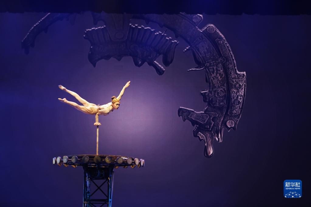 3月31日,在江蘇省鹽城市建湖縣,雜技演員王夢(mèng)塵練習(xí)《煉——倒立技巧》,她憑借這一節(jié)目摘得中國(guó)雜技比賽最高獎(jiǎng)“金菊獎(jiǎng)”。