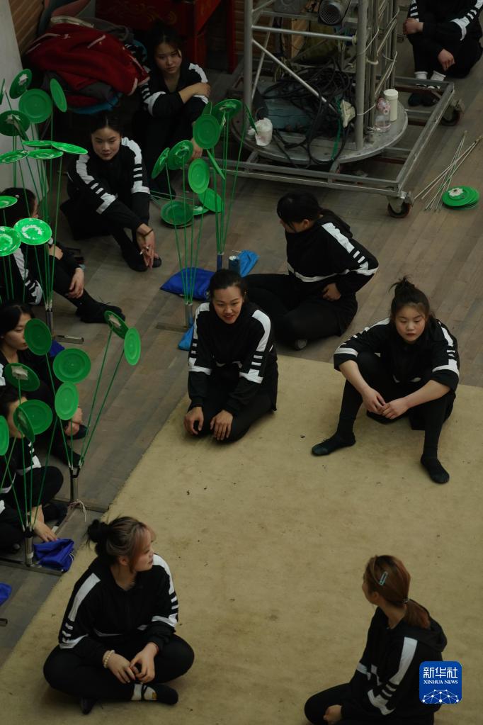 3月31日,演員在位于江蘇省鹽城市建湖縣的江蘇省雜技團(tuán)訓(xùn)練間歇休息。